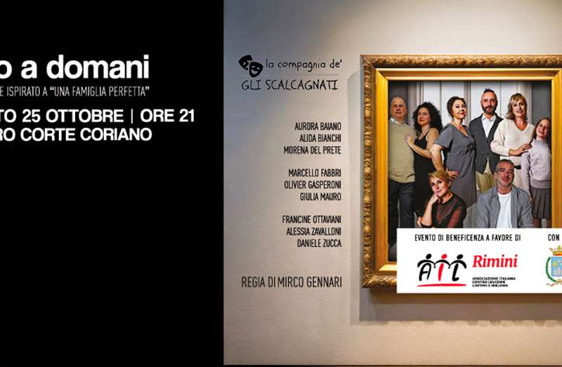 Sabato 25 ottobre 2025 ore 21:00 al Teatro Corte di Coriano va in scena “Fino a domani”, commedia presentata da La Compagnia degli Scalcagnati, diretta da Mirco Gennari e liberamente ispirata al film “Una famiglia perfetta” di Paolo Genovese. La vita è un palcoscenico dove ognuno recita il proprio ruolo, piccolo o grande che sia.