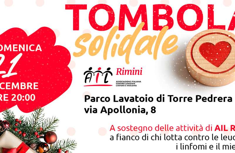 Domenica 21 dicembre 2025, alle ore 20:00, AIL Rimini organizza una Tombola Solidale, presso il Parco Lavatoio di Torre Pedrera, in via Apollonia 8. L’iniziativa, giunta a un nuovo appuntamento natalizio, rappresenta un’occasione concreta per sostenere chi ogni giorno affronta leucemie, linfomi e mieloma.