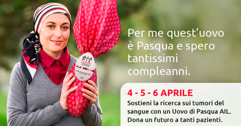 Dentro un Uovo di Pasqua AIL c’è molto di più di una semplice sorpresa. Ci sono i sogni di migliaia di pazienti che tu puoi aiutarci a realizzare. Per continuare a far crescere la Ricerca abbiamo bisogno del tuo aiuto: il 4-5 e 6 aprile scegli le Uova di Pasqua AIL. C’è la possibilità per […]